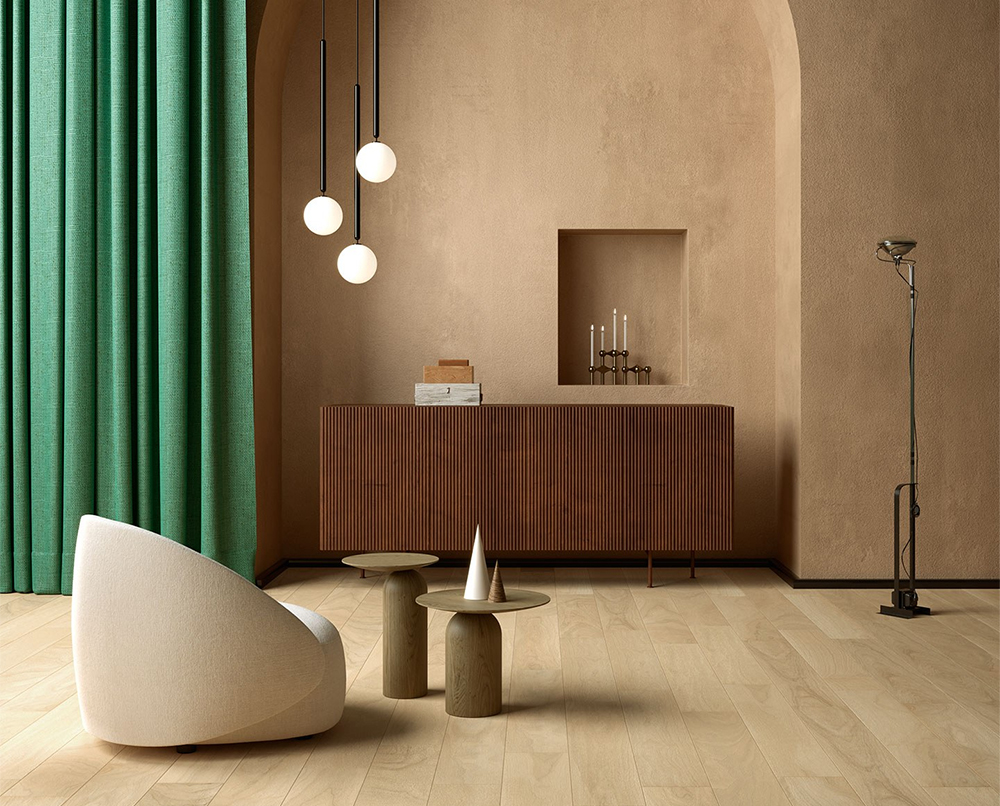 Սենդ՝ հավաքածուի ամենաբաց տարբերակը։ Բաց, գրեթե բլեշավորված տոնը հիշեցնում է սկանդինավյան կաղնին և տանը ստեղծում է օդի և տարածության զգացողություն։ Նախշը արտահայտված է նրբորեն, բայց բավարար է, որպեսզի նյութը հարթ չթվա։ Այս երանգը հեշտությամբ ներդաշնակվում է տարբեր ոճային լուծումների մեջ՝ մինիմալիզմից մինչև ժամանակակից կլասիկա։